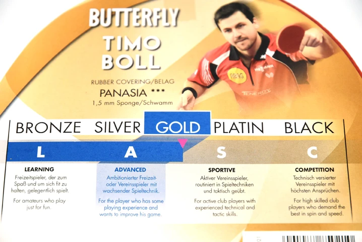 - Der Butterfly TIMO BOLL GOLD ist ein Trainingsschläger für geübte Spieler