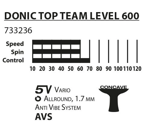 - Der „Top Team 600“ Tischtennisschläger von Donic eignet sich für den Freizeitgebrauch und den Schulsport, vom Einsteiger bis hin gelegentlichen Hobbyspieler