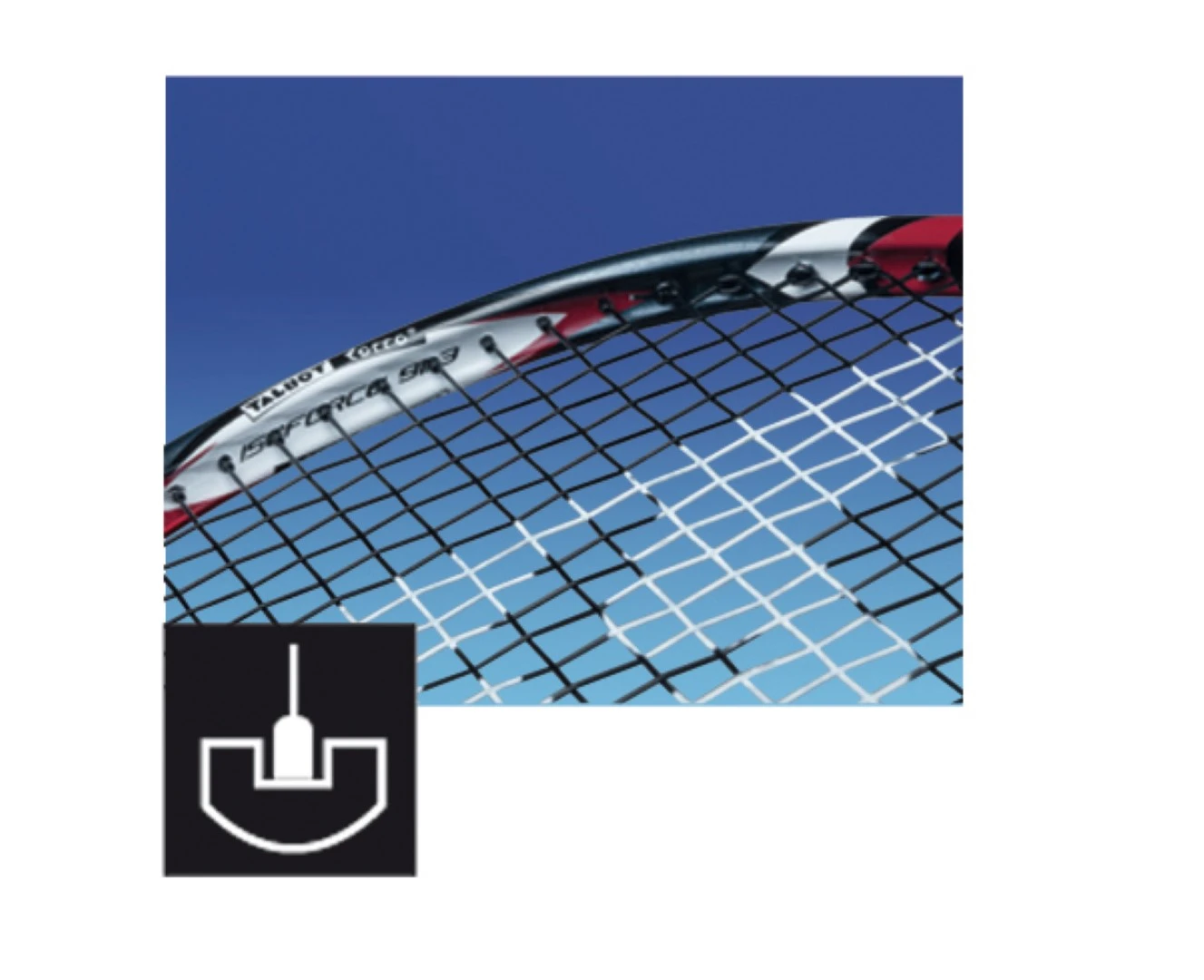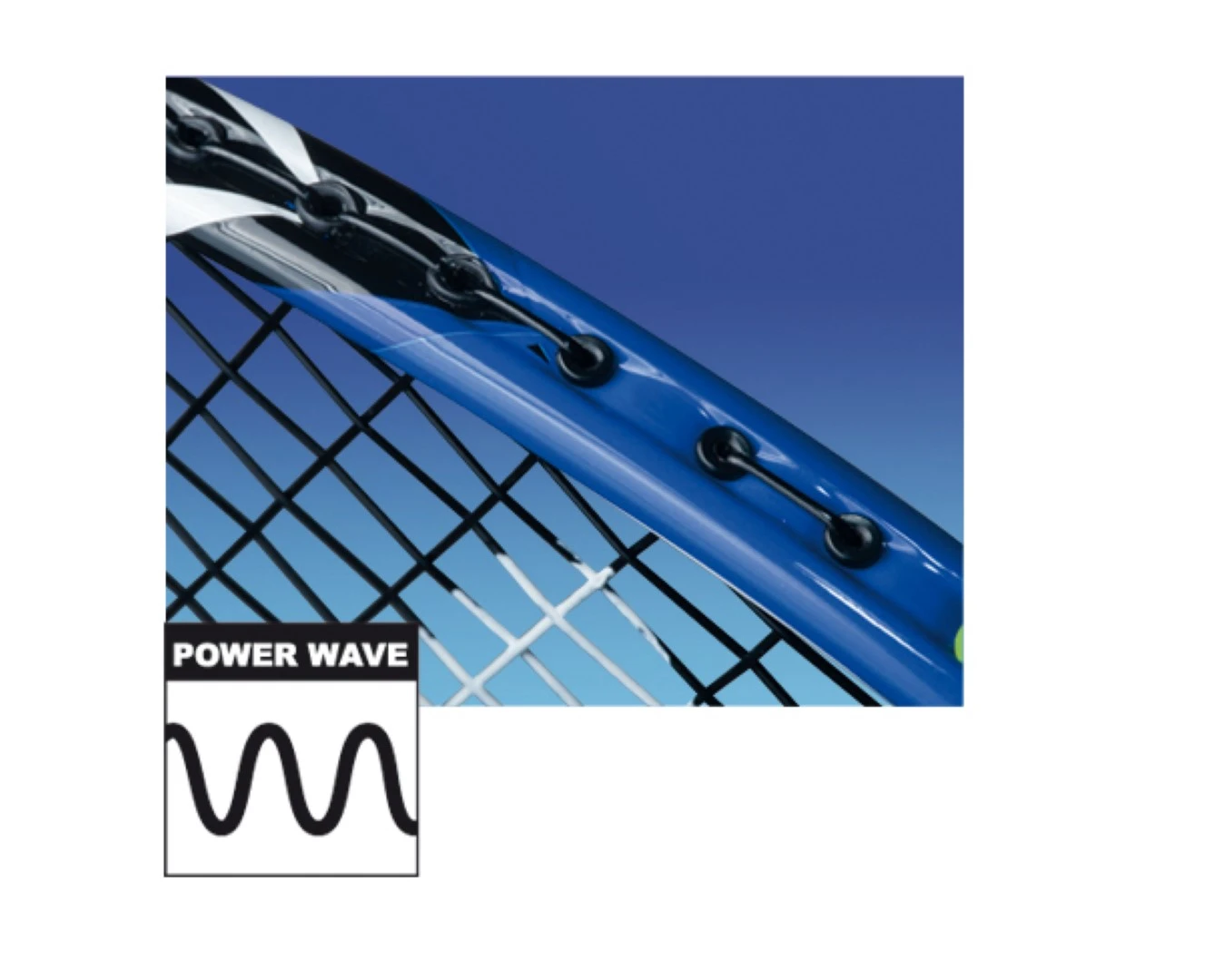 Hier sind auf 3 sowie 9 Uhr die Ösen / Saiten-Löcher durch den Rahmen etwas vergrössert, damit die Saite durch den Rahmen durchschwingen kann. Somit entsteht auch hier mehr Power durch größeren Trampolineffekt.