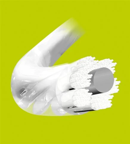 - Um den monofilen Zentralkern (“Solid Core”) sind 985 mit hochelastischem Polyurethan imprägnierte Filamente umwoben, die den typischen Komfort der TF-Saiten erzielen. Das Polyurethan (PU) hat die Fähigkeit, sich um sensationelle 400% auszudehnen und ohne Performance-Verlust wieder in seine Ausgangsbasis zurückzukehren.